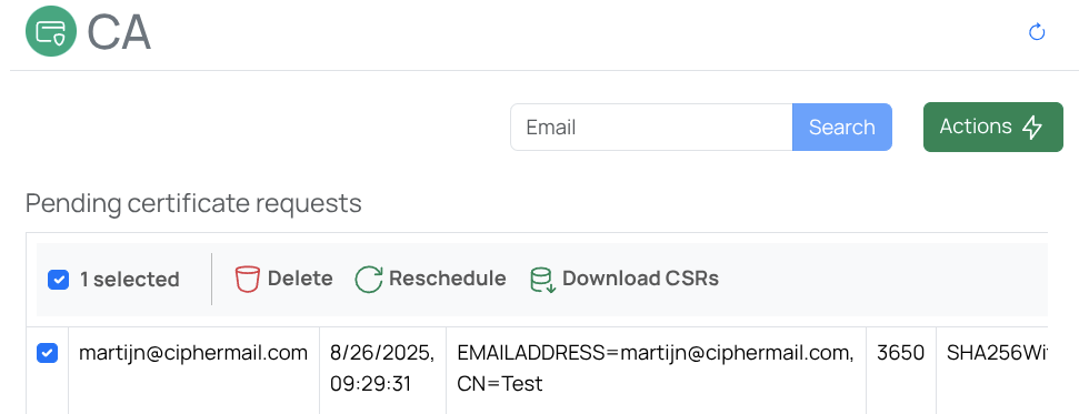 ciphermail-cli swisssign mpki get clientsThis will return a list of the products you can use from SwissSign. Copy the uuid of the product you want to use (the code should starts with the